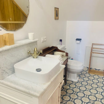 Une salle de bain privative composée d'une douche , un vasque et de toilette séparé